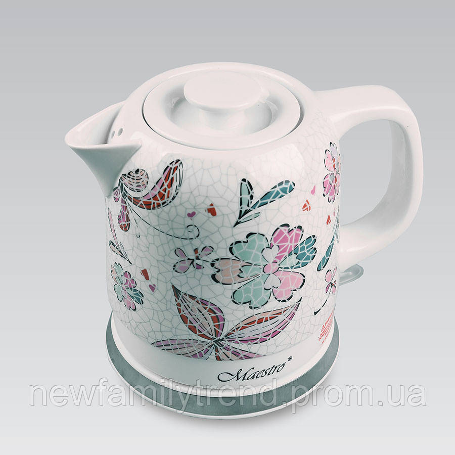 Електрочайник керамічний 1.5 л Maestro MR-068-FLOWERS Електрочайник із кераміки 1200 Вт Чайник дисковий