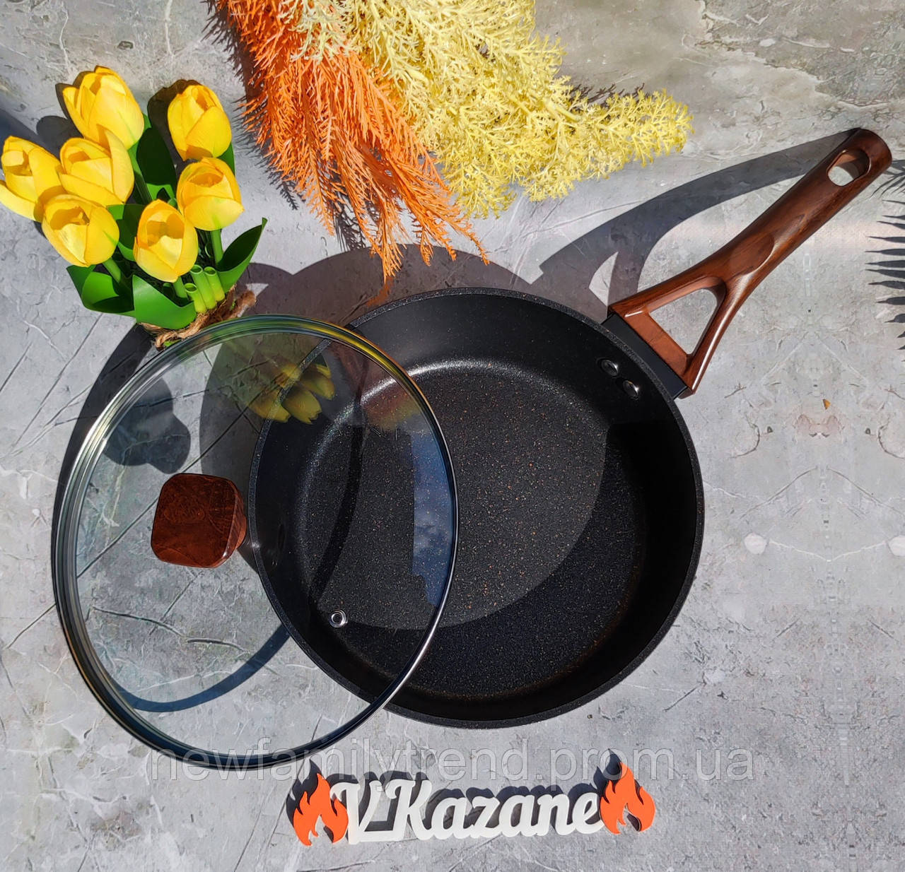 Сковорідка має сучасний дизайн, який прекрасно впишеться в інтер'єр вашої кухні та додасть їй стильного акценту.