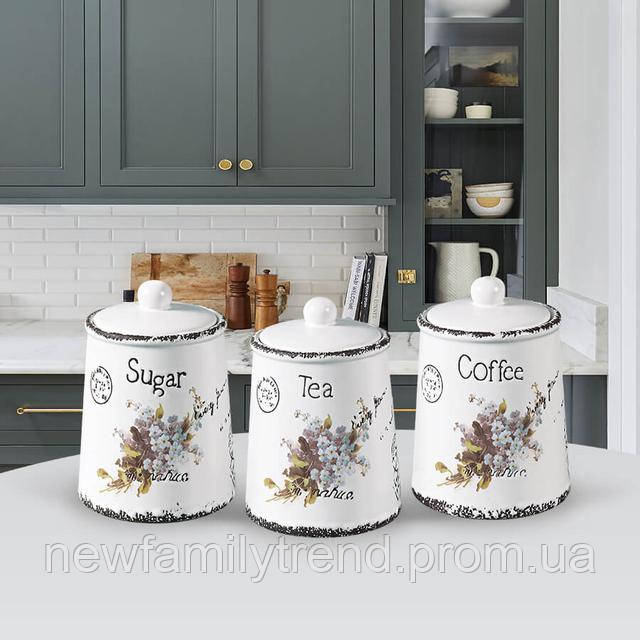 Набір банок для сипких продуктів чай, кава, цукор 3 шт. Maestro MR-20049-03CS Набір керамічних банок для дому