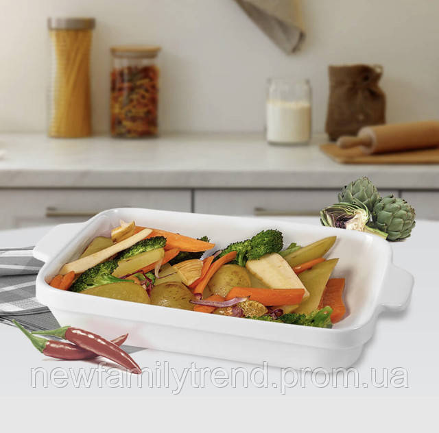 Фарфорова Форма для запікання 35,5 см деко Maestro MR-11442-43 Прямокутний лист блюдо Білий