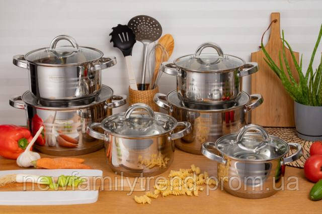 Набір кухонного посуду з неіржавкої сталі 12 предметів Edenberg EB-4018 Набір каструль для всіх різновидів плит